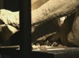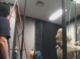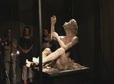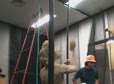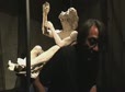2008-8-30 【〈土の土方像〉舞台裏】水滴滴下装置の設置。ホースを天井に取り付けています。Setting up the water-dropping device. Attach a hose-pipe to the ceiling (no sound). |